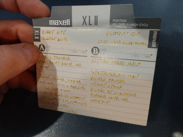 The first tape I put in to check out turned out to be a blues mix of my fave tunes. I could now recreate this tape on my phone of computer in like a minute, but I recall that it took an afternoon to put together using 2 tape decks. Ah, technology. I’ll make a label for it and keep it. Still love it.