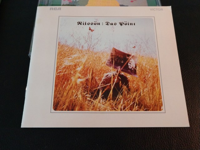 and the booklet includes a photo of what was to be the original cover of the album… a photo of Harry Nilsson on the point of an old German army helmet, which was soundly rejected by his record company.