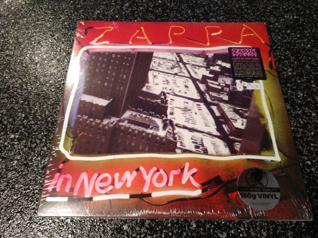 Then I flipped through the rest and hemmed and hawed and couldn’t make a decision, so I went upstairs to look at the new vinyl. And what did I find? More Zappa! I always wanted the “In New York” vinyl, and this one had a bonus LP in it of unreleased cuts from the shows. Again, price was right. Mine.