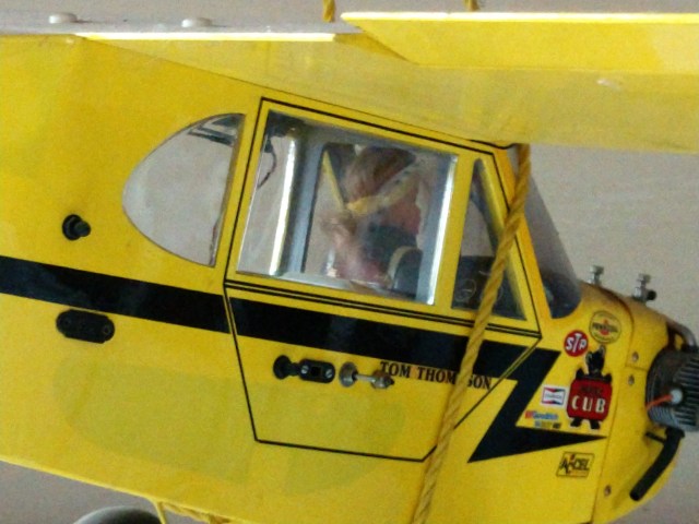 If my father were still alive I would have bought one for him to put in one of his radio control planes instead of this blonde gal. This poor Barbie has been in the cockpit of this Piper Cub my father built (now hanging in my garage) for nearly 35 years. Or at least her head has been. Wouldn’t that red hair look great and contrasty in this plane?