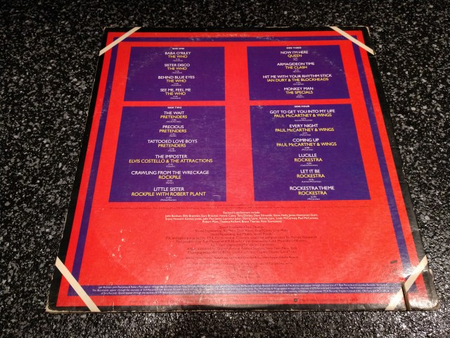 I will start by saying this. At the time this album was in my orbit, I didn’t know who some of these artist were. The Specials, Rockpile, Ian Drury were unknown to me, The Pretenders I had heard of but wasn’t into and who the hell was Rockestra? Also, The Who, all of side one of the album, who were known to me but only as “My Generation” and the song I thought was called “Teenage Wasteland”. I had no idea what “See Me Feel Me” or “Sister Disco” was so that basically made 1/4 of this album a gamble. I knew and LOVED Paul McCartney and Wings, but as I said, had no idea who Rockestra was and even if I did, one album side of great stuff was only 1/4 of it. So… with unknown artist and no guarantee my scarce money was going to produce pure joy if I purchased this album, I always passed on it.