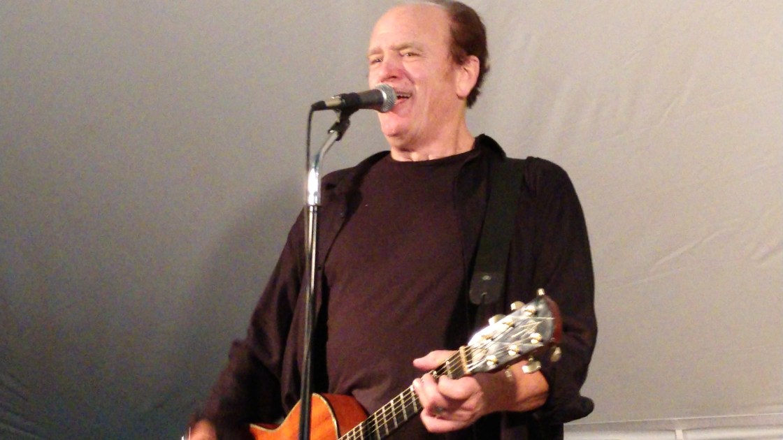 We ended up under the tent 2 hours before showtime. There was the obligatory accordion super group and the piano bar guy performances leading up to Pat’s set. We worked our way from center tent at a picnic table to up front just outside the tent. After piano bar guy, the officer (arrests at Wauktoberfest?) that was installed at a little round table just under the tent at front stage right started his rounds and I staked a claim at the little table and moved it a bit closer to the stage. Eventually someone delivered stools to us (after piano guys dismantle his fake grand piano bar setup) and we settled in for the last 15 minute wait.