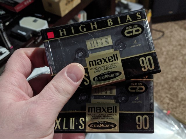 I did a few years as a bootleg tape trader. This was when I was introduced to Maxell XL II – S cassettes. The Maxell XL II seemed to be the tape trader favorite. They were more expensive than my beloved TDK 90 tapes, but had better sound quality, or so the tape traders all said. Here are a couple brand new unopened I picked up (for fun) at a garage sale for $1 each.