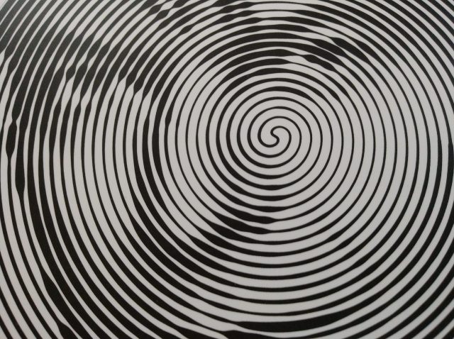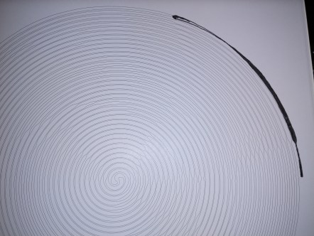 I have to say I was intrigued. It is sort of a coloring book, except you fill in a line with various thicknesses that spiral into the center, and then back out.