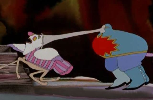 There is a scene where the Pepperland residents are grey and frozen and the Apple Bonkers are keeping them inert with apples. The music playing is ominous and brooding. I remember it making me so scared and sad as a kid.