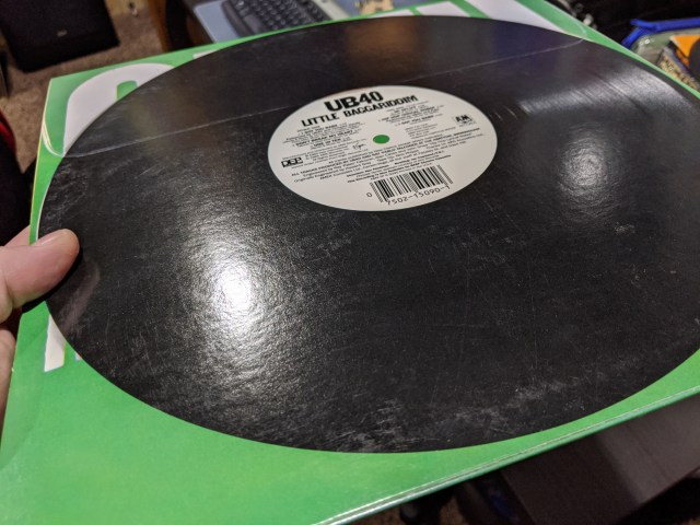 However… the plastic sleeve was a bit of a hassle. In the end, trying carefully to get it back under the back flap and into the plastic sleeve lead to some drops and scratches. Sigh. And… ultimately I ended up getting rid of it with all my other records vowing to re-buy them all on CD.