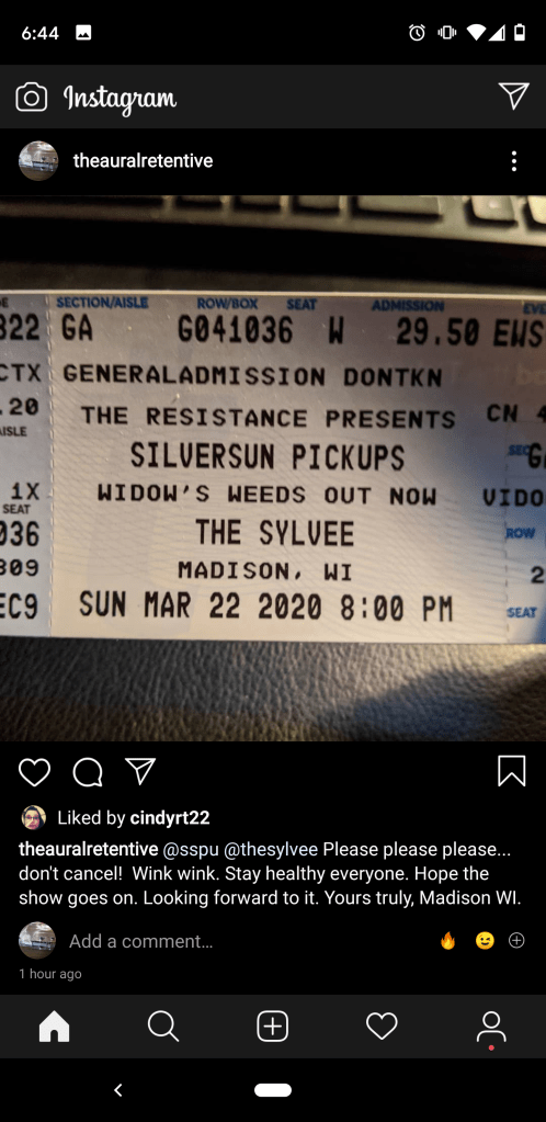 Behold my ticket for the Silversun Pickup’s show at The Sylvee in Madison or March 22nd. I was online minutes after they went on sale with a pre-sale code and excitement in my fingers.