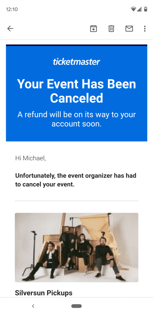 I have cautiously been hopeful that somehow the pandemic would dwindle, and that somehow the show would be rescheduled, and somehow I would be okay being packed in with other fans wearing a mask, however…