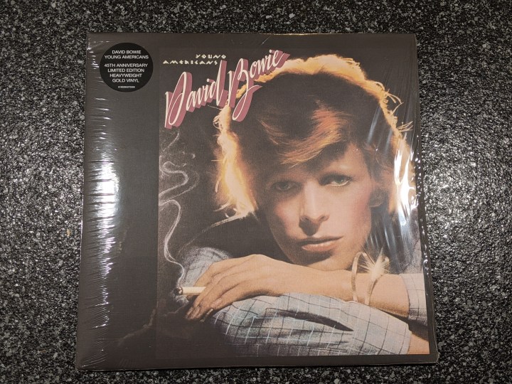 In that collection was an unusual copy of Young Americans. I believe it is an original pressing. As a bonus, it has electrical tape (?) in black and brown, attempting to hold the cover together.