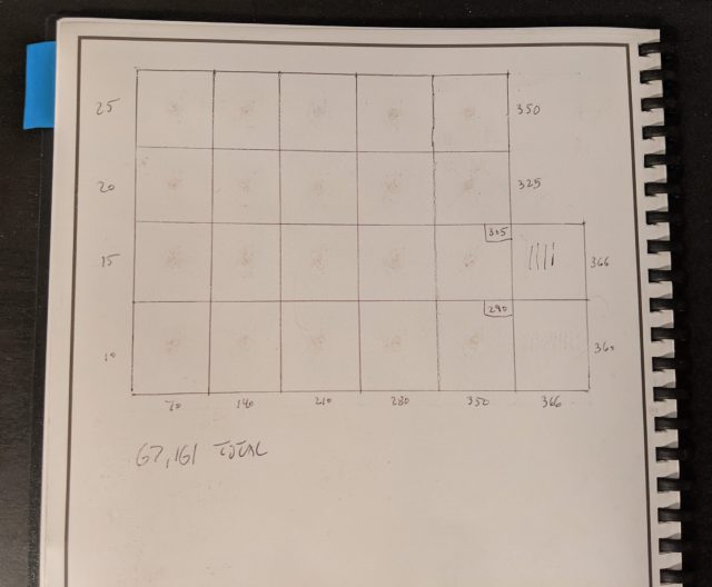 This has had its ups and downs. I didn’t think I was going to make it past 100, but made it. I didn’t think I was ever going to be able to do more than 25 at a time, but ended being able to do 50 in a set. Eventually I had to go from a simple set of checkboxes in Google Keep to a full blown chart. This is one of those notebooks you can wipe off the pages with water, or use the eraser on the pen. You can see that I have marked and erased over and over again within the squares so many times that you can still see the marks. I think I wore out the page. This shot is from day 364.