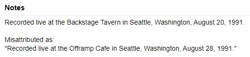 Recorded live at the Offramp Cafe in Seattle, Washington, August 28,1991.
