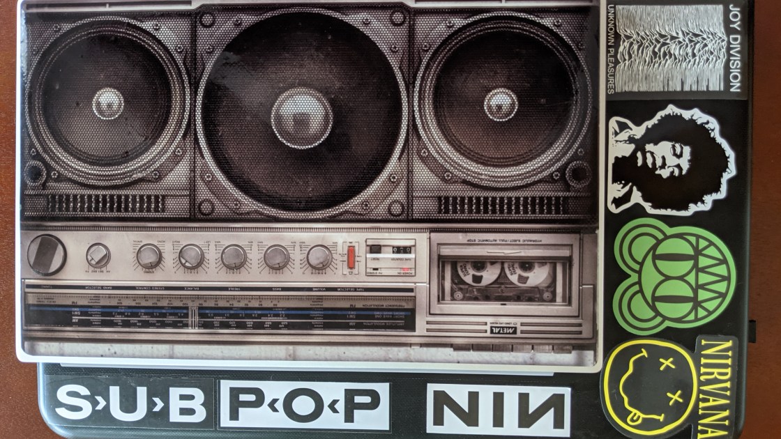 I then got a new one that became the new workhorse. I managed to save the “boombox” sticker off of the lid and added it to the new laptop. I added a few more to it along the way.