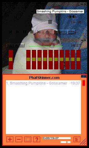 This was another thing that I spent ridiculous amounts of time getting. I even got a program that you could use to make your own skins. When my friend Alan’s daughter was born he sent me a picture and I made a skin with it. I just searched my files and I still have it! Created 7/5/2002. How about this Alan. From baby to college in the blink of an eye!