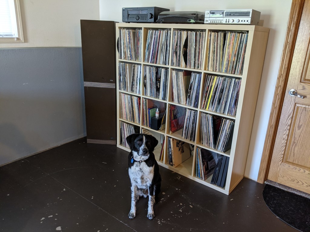 Things are a little haphazard at the moment, but it all works and I have enjoyed some splendid vinyl. I pulled the absolute essential records from the full collection to fill the top row of this more diminutive kallax… perfect for this room. The far right album in the box is the album that Allan wants me to digitize. Not only did it survive the move, I was able to FIND it.
