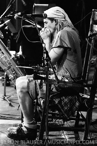 He was using the rocking as a bass drum and there was a microphoned stomp board under his feet that he was working and playing harmonica to boot. He interspersed a lot of whoops and hollers along the way.