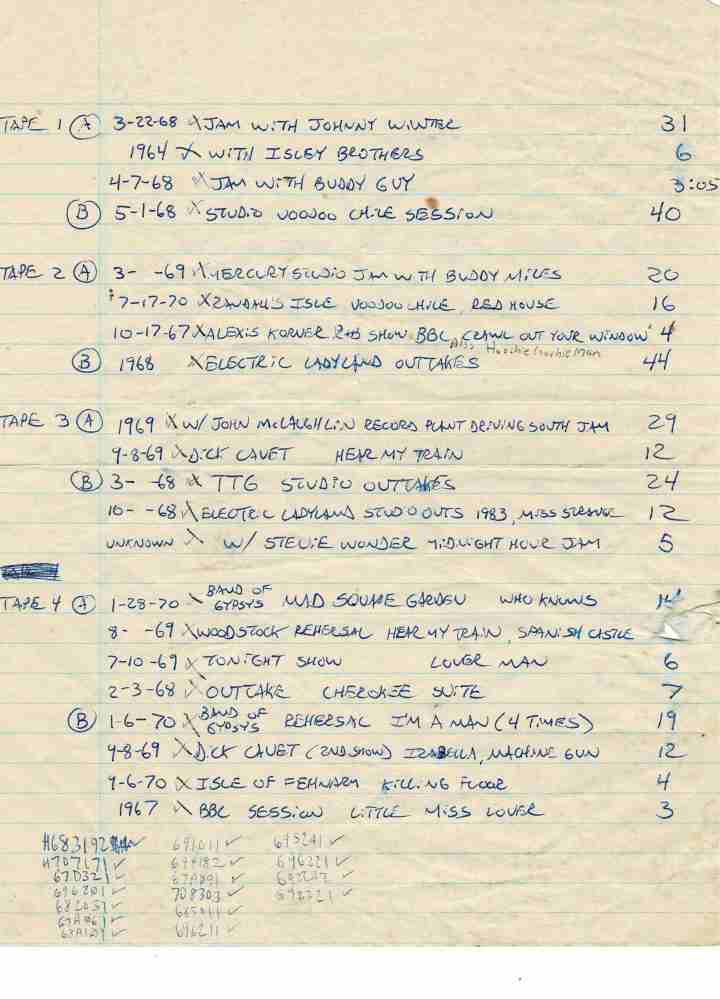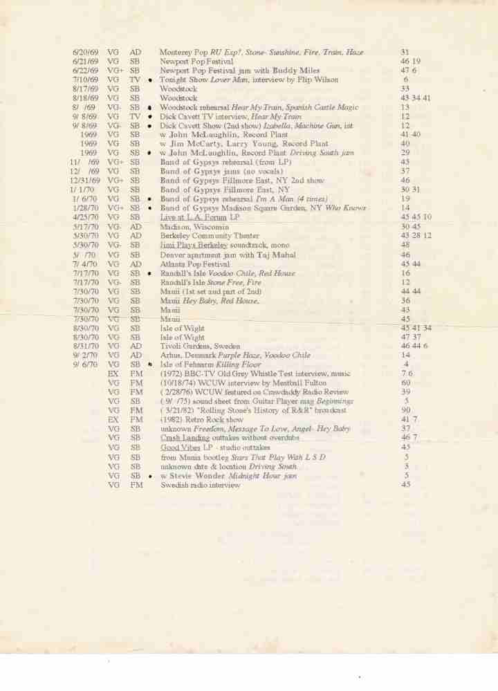 Now Scott advertised that he had a lot of Hendrix and I was interested. I wrote to him and he sent me his list.