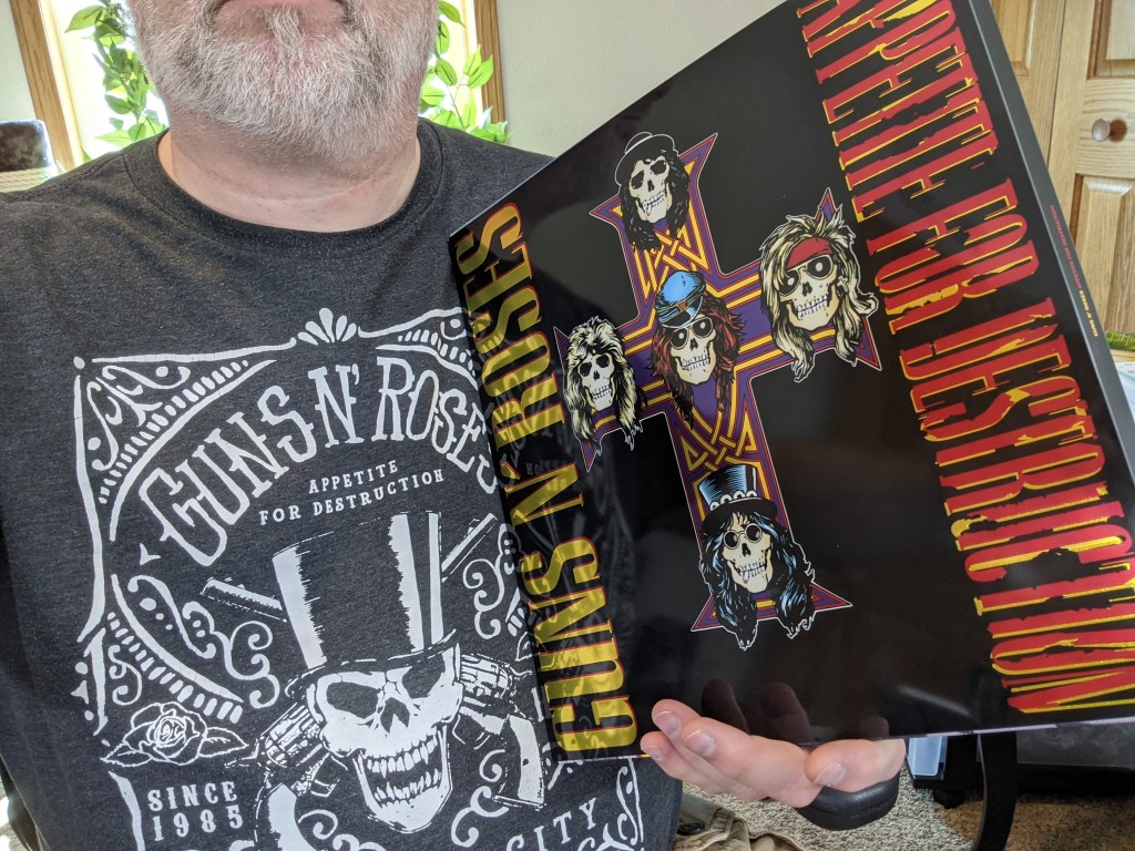 Okay, I once had “Guns N’ Roses – Appetite For Destruction” in my vinyl collection, inherited from Dalton, and for some reason, some stroke of temporary madness… I let it go. I have always regretted that. Each time “Sweet Child Of Mine” comes on in the car from Cindy’s USB stick I am throwing horns and weeping at the same time.