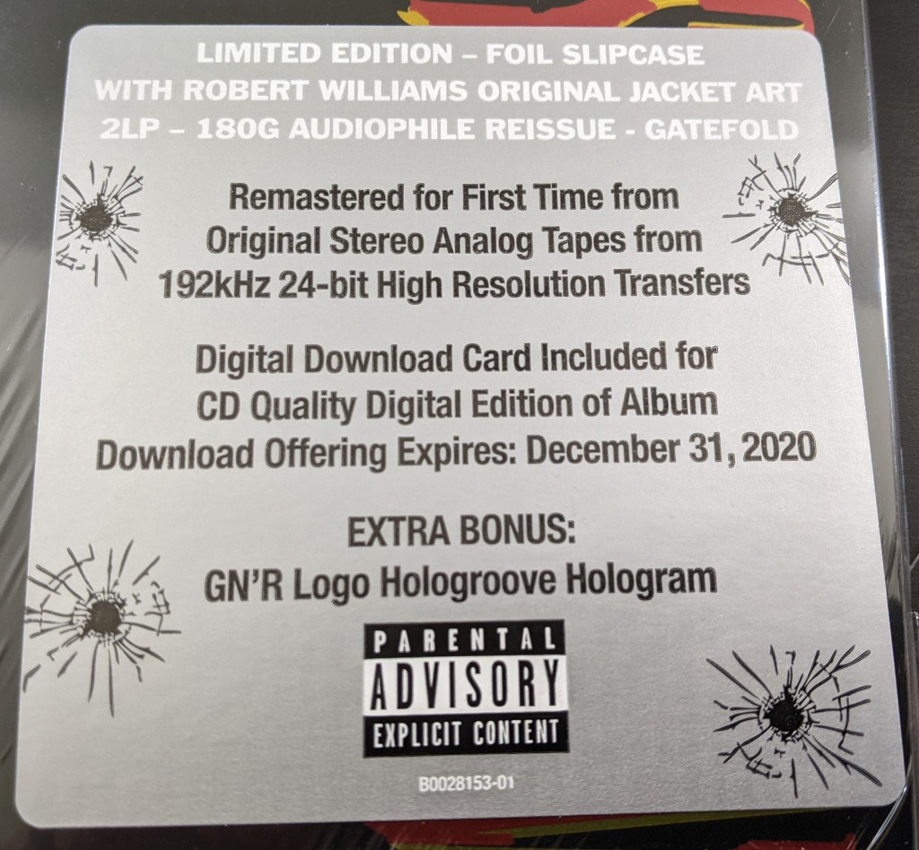 2018 Reissue of Guns N’ Roses “Appetite For Destruction”.