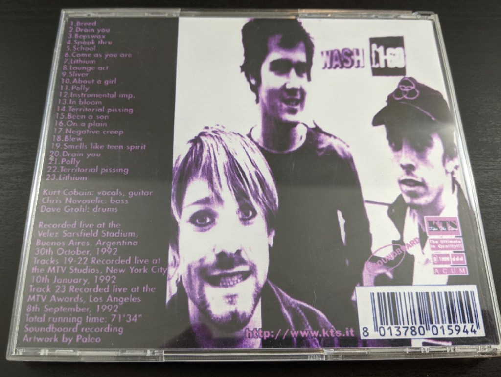 Sometimes Dalton would try and duplicate a CD entirely. He found the tracks for a Nirvana bootleg and created this gem for me.