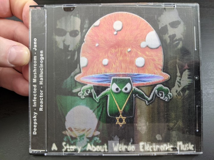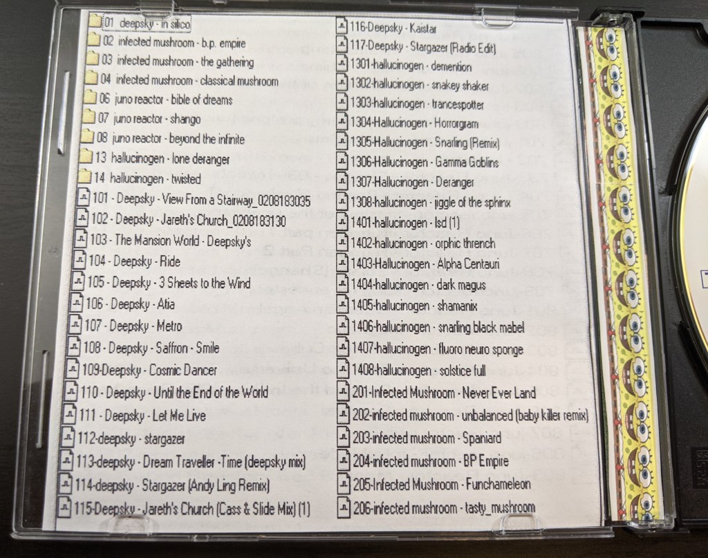 CD was no great shakes here. That’s a Hallucinogen sticker. Spongebob was a nice touch on the spine.