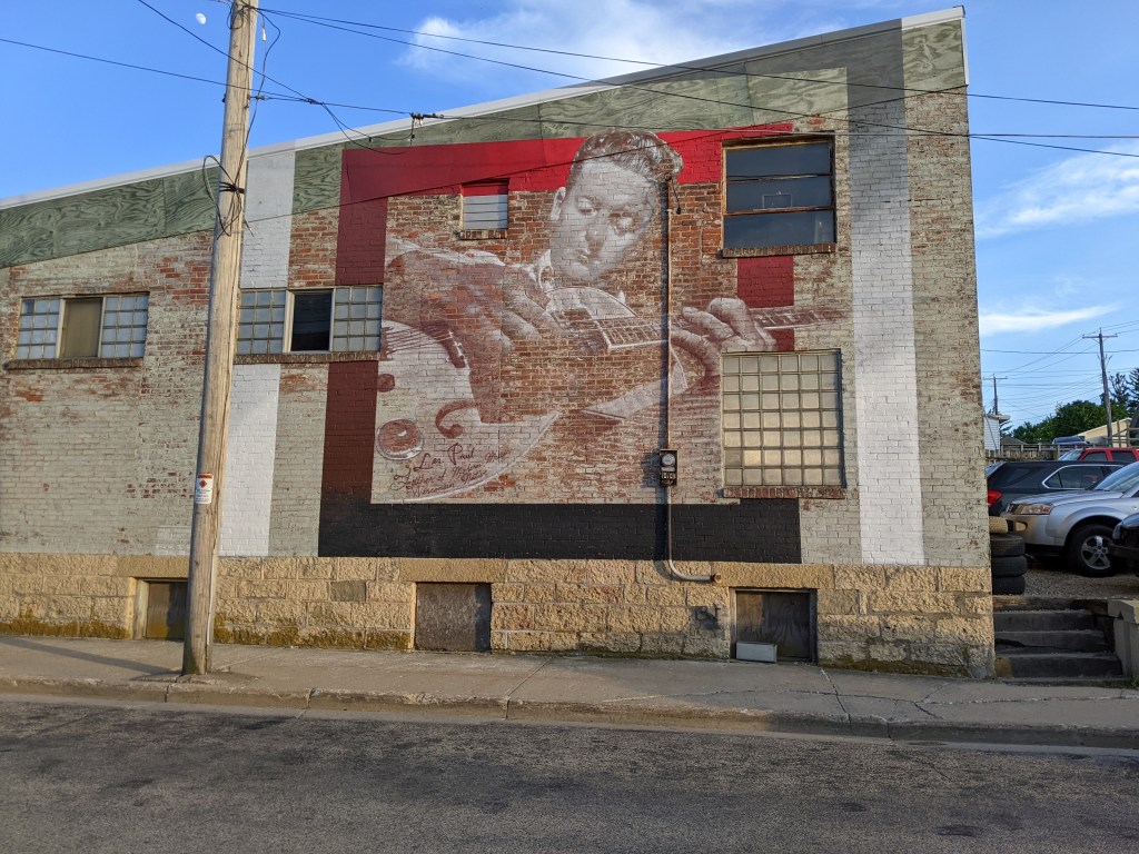 Les Paul was born in Waukesha Wisconsin and significant in the history of music and this little gem is a great sight every time I go by. Reminds me of the Good N Loud mural that is sadly gone now that was on University Avenue.