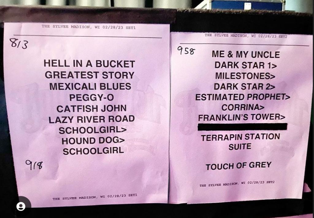 Dark Star 1 > Milestones > Dark Star 2 > Estimated Prophet > Corrina > Franklin’s Tower and then to Terrapin Station Suite.