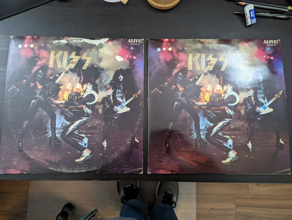Interestingly, when I got to “Kiss -Alive” it seemed clear which copy I would keep. One was a Dalton original (left) and one almost pristine copy I bought for under 3 bucks (right).