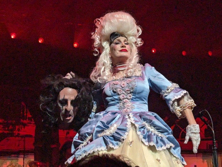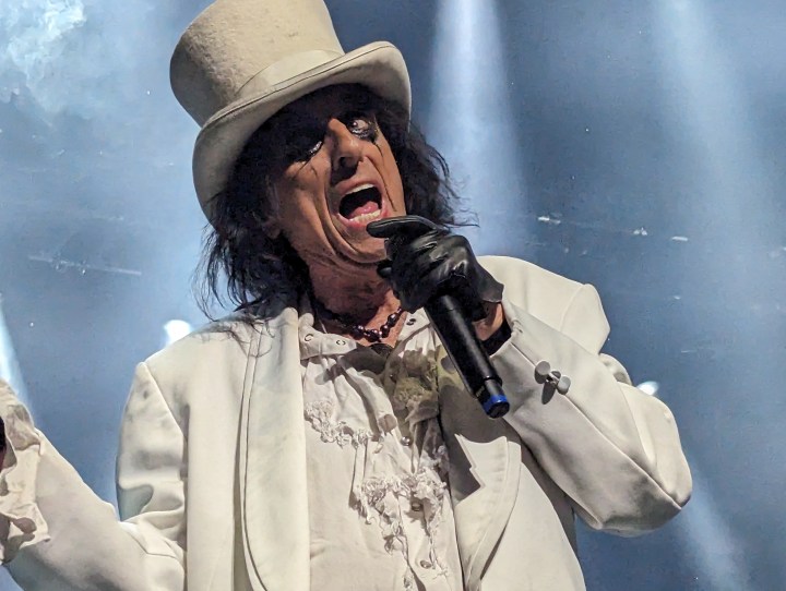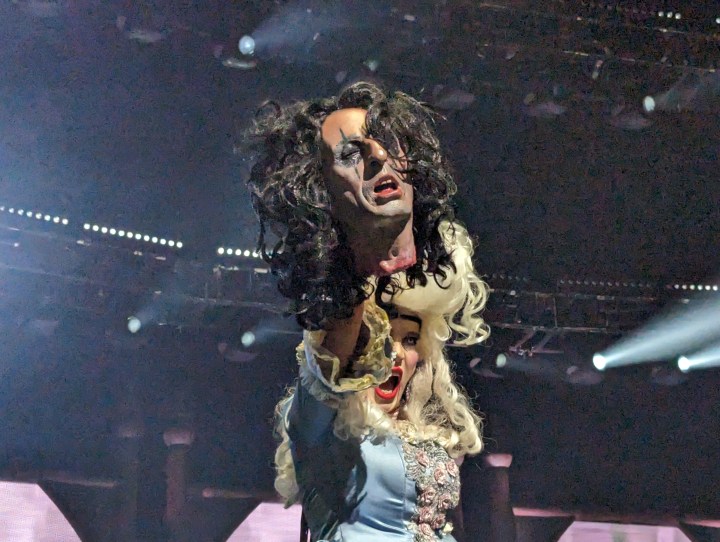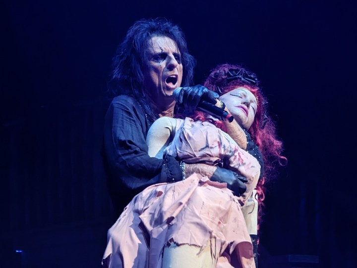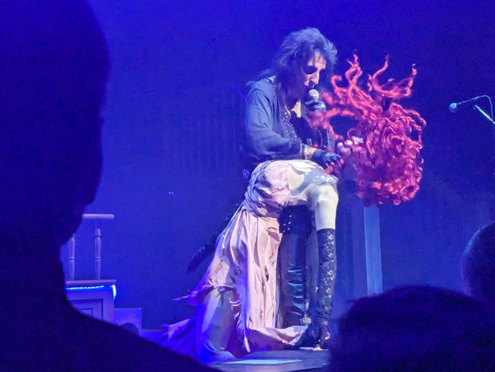 Then Alice tossed her over the back of the stage. When he started playing “Only Women Bleed” a dancer crawled up from where Alice had thrown the doll. She danced around him as he sang.