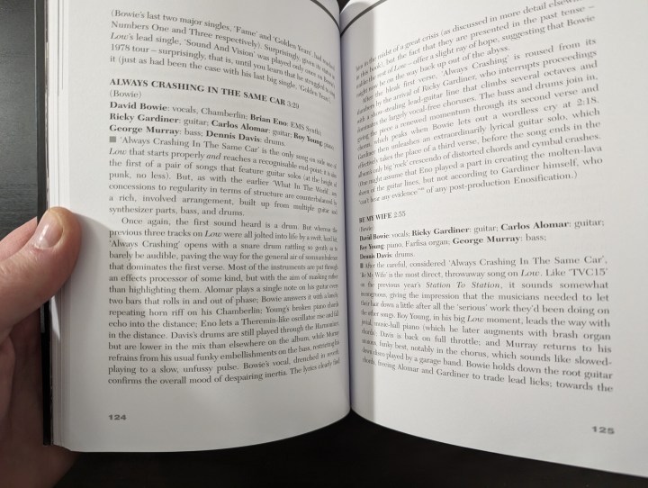 The book gives lots of narrative to appeal to the casual Bowie fan, but also detail regarding the album and the individual tracks that is very important to this work. Details about who played what and if there was any backstory to the songs. A perfect combination if you ask me of detail and history.