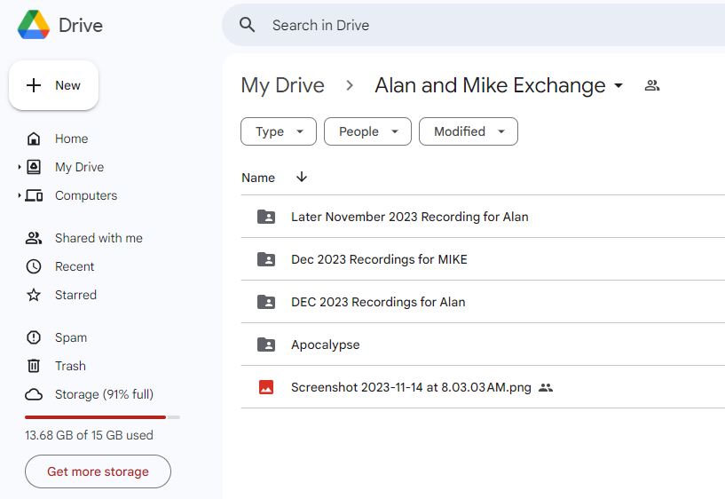 While I was out in Seattle visiting Alan this year he gave me the files he had recently recorded (he’s using his phone now too), and I brought my latest. Then we devised a new method of delivery: Google Drive!